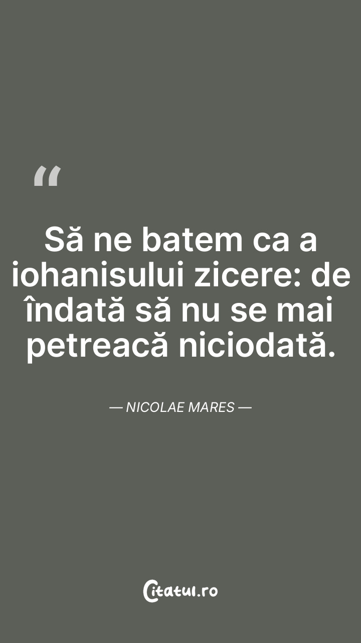 Să ne batem ca a iohanisului zicere: de îndată să nu se mai petreacă niciodată. Nicolae Mares