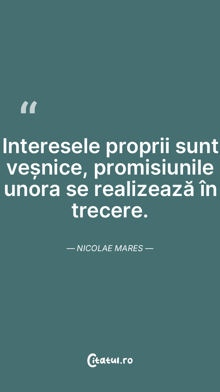 Interesele proprii sunt veșnice, promisiunile unora se realizează în trecere. Nicolae Mares