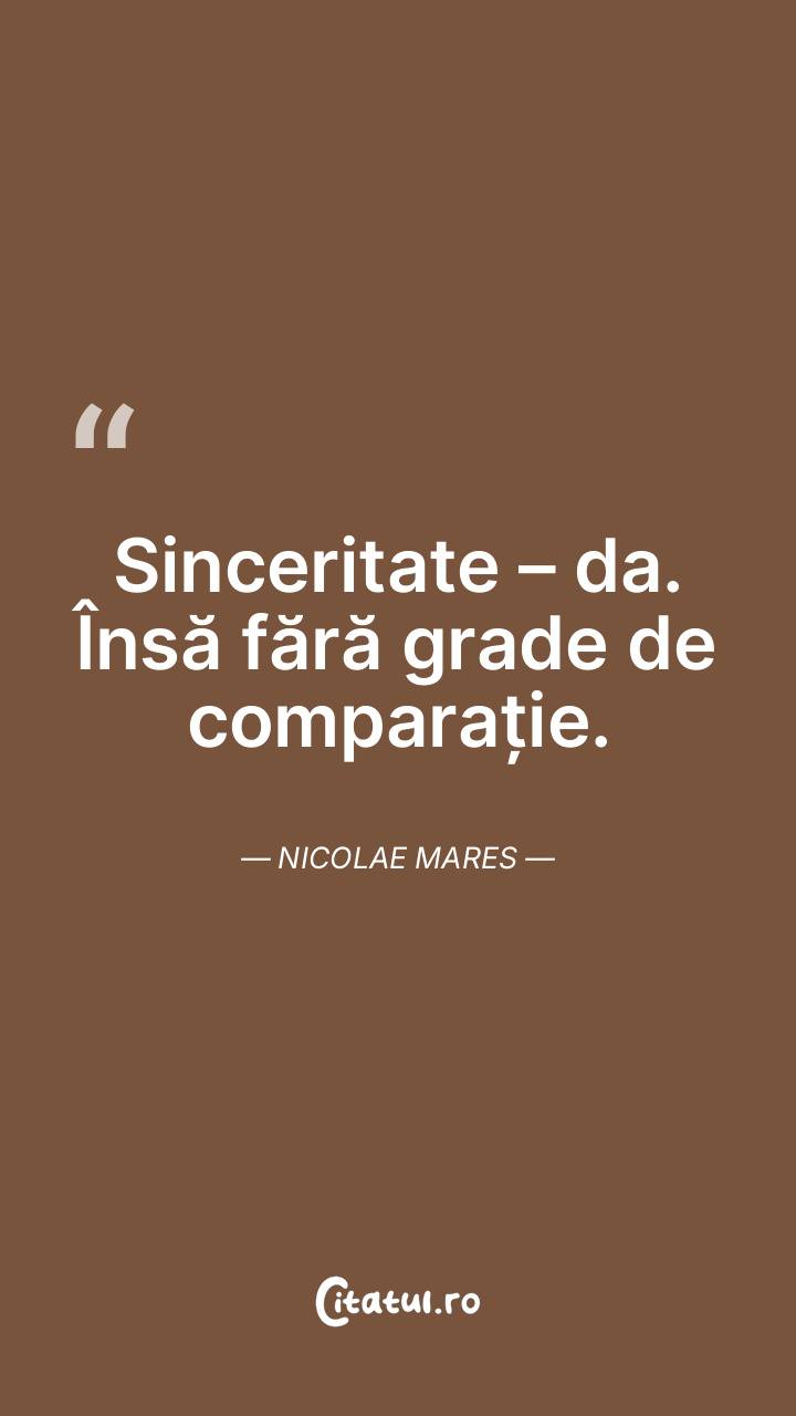 Sinceritate – da. Însă fără grade de comparație. Nicolae Mares