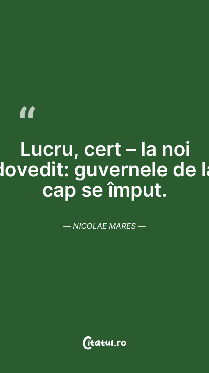 Lucru, cert – la noi dovedit: guvernele de la cap se împut. Nicolae Mares
