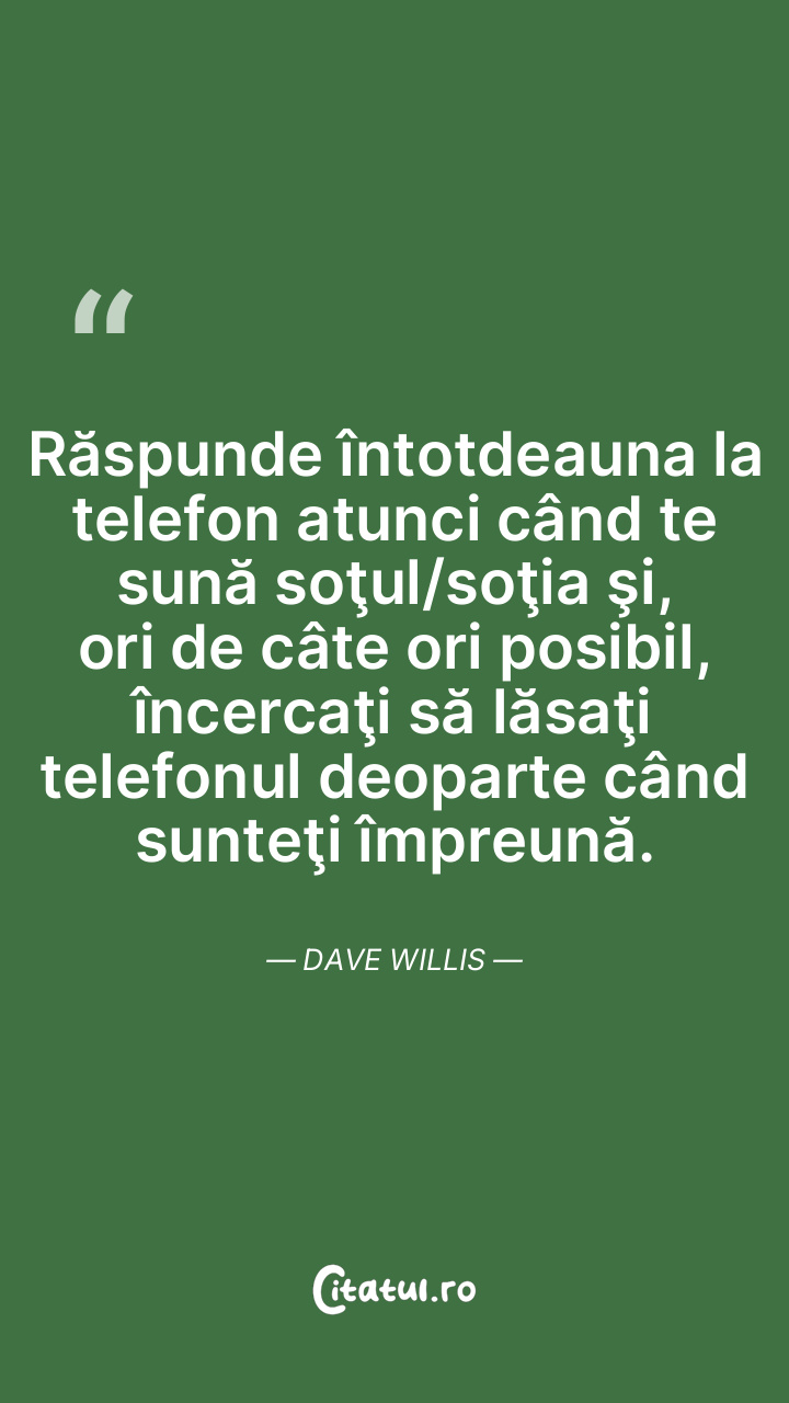 Răspunde întotdeauna la telefon atunci când te sună soţul/soţia şi, ori de câte ori posibil, încercaţi să lăsaţi telefonul deoparte când sunteţi împreună. Dave Willis