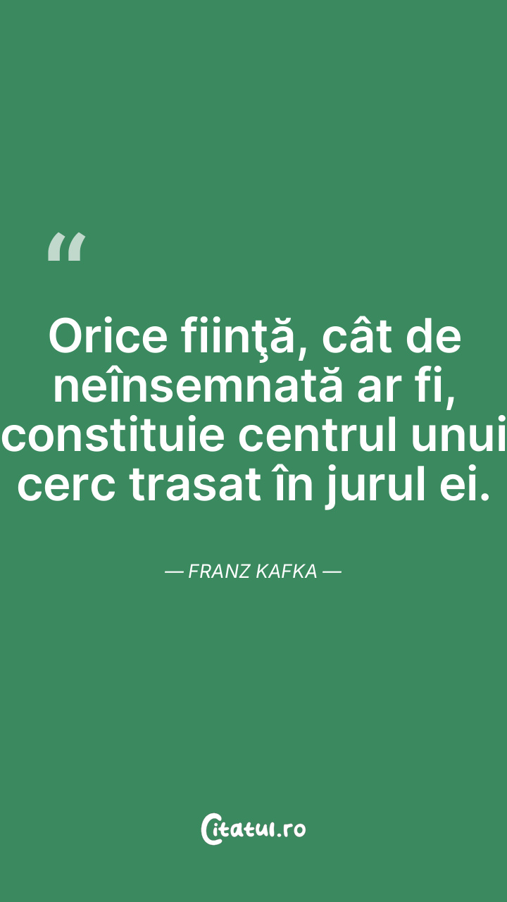 Orice fiinţă, cât de neînsemnată ar fi, constituie centrul unui cerc trasat în jurul ei. Franz Kafka