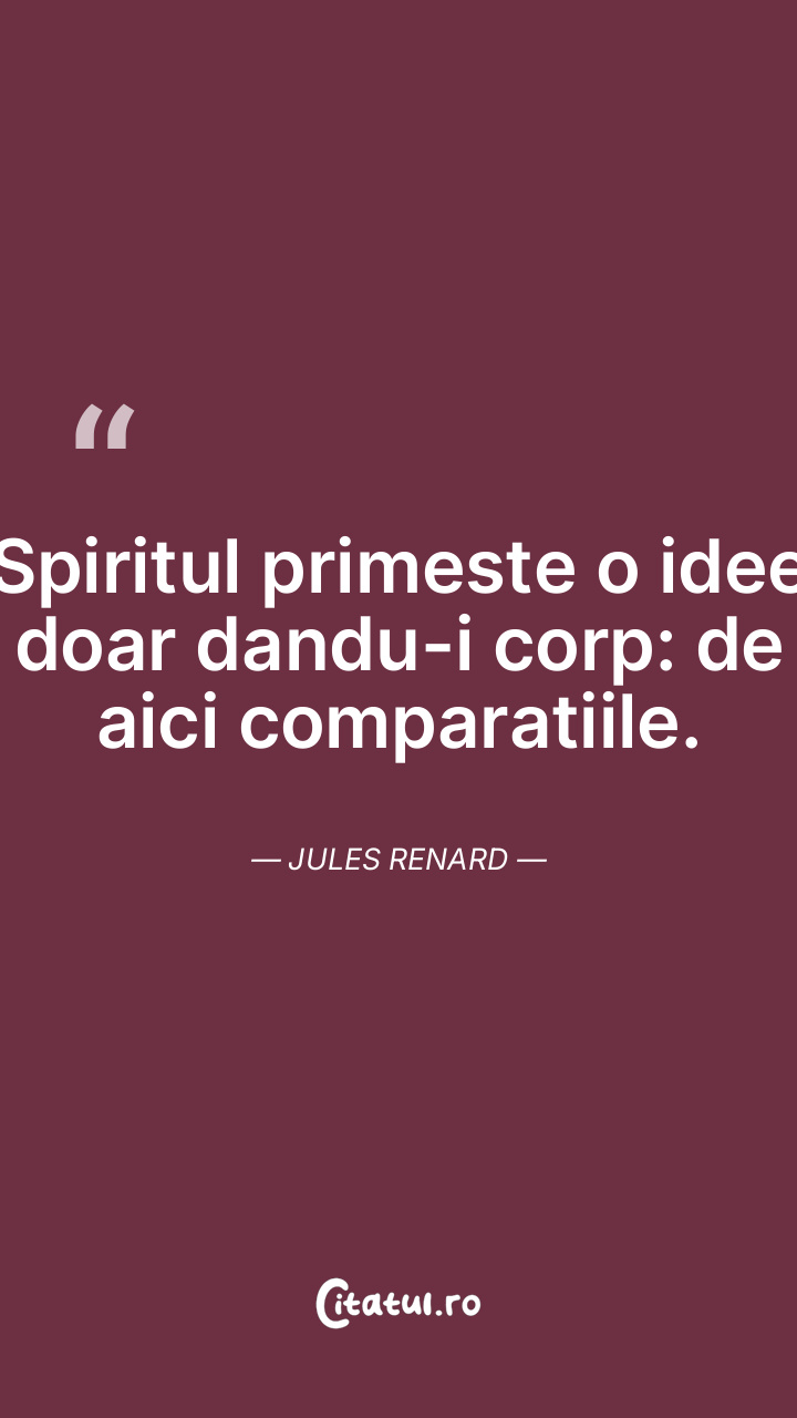 Spiritul primeste o idee doar dandu-i corp: de aici comparatiile. Jules Renard