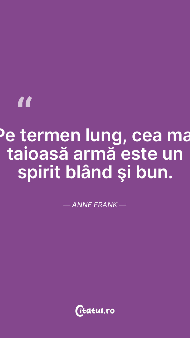 Pe termen lung, cea mai taioasă armă este un spirit blând şi bun. Anne Frank