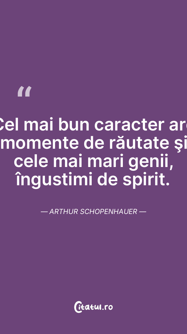 Cel mai bun caracter are momente de răutate şi cele mai mari genii, îngustimi de spirit. Arthur Schopenhauer