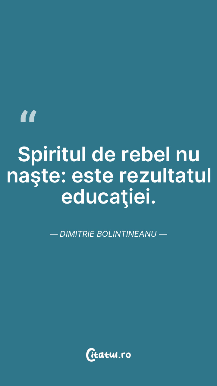 Spiritul de rebel nu naşte: este rezultatul educaţiei. Dimitrie Bolintineanu