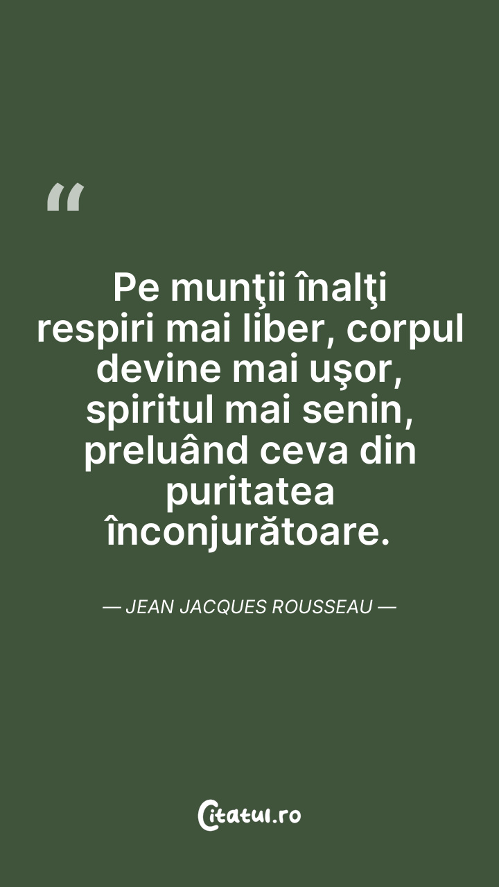 Pe munţii înalţi respiri mai liber, corpul devine mai uşor, spiritul mai senin, preluând ceva din puritatea înconjurătoare. Jean Jacques Rousseau