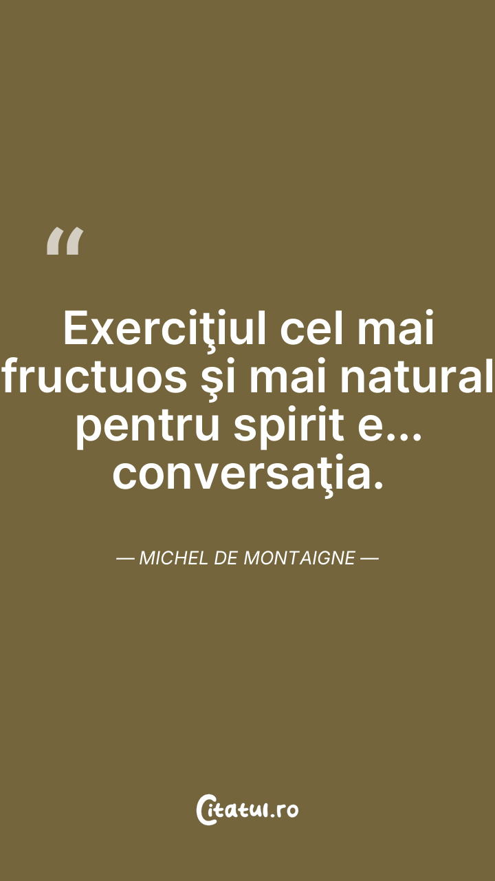 Exerciţiul cel mai fructuos şi mai natural pentru spirit e... conversaţia. Michel de Montaigne