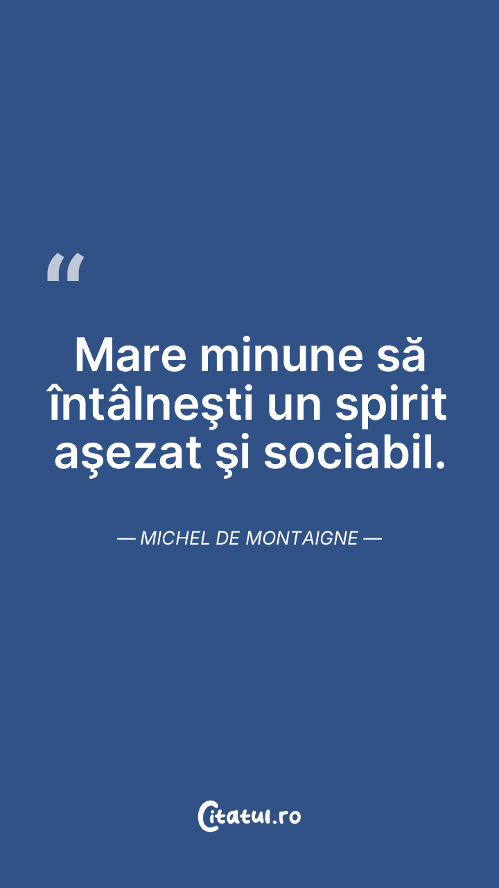 Mare minune să întâlneşti un spirit aşezat şi sociabil. Michel de Montaigne