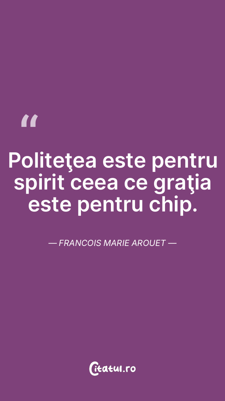 Politeţea este pentru spirit ceea ce graţia este pentru chip. Francois Marie Arouet