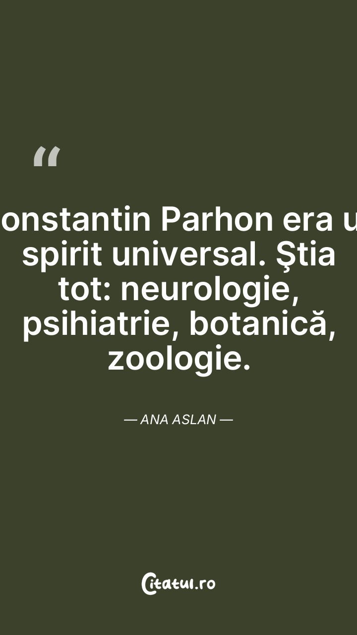 Constantin Parhon era un spirit universal. Ştia tot: neurologie, psihiatrie, botanică, zoologie. Ana Aslan