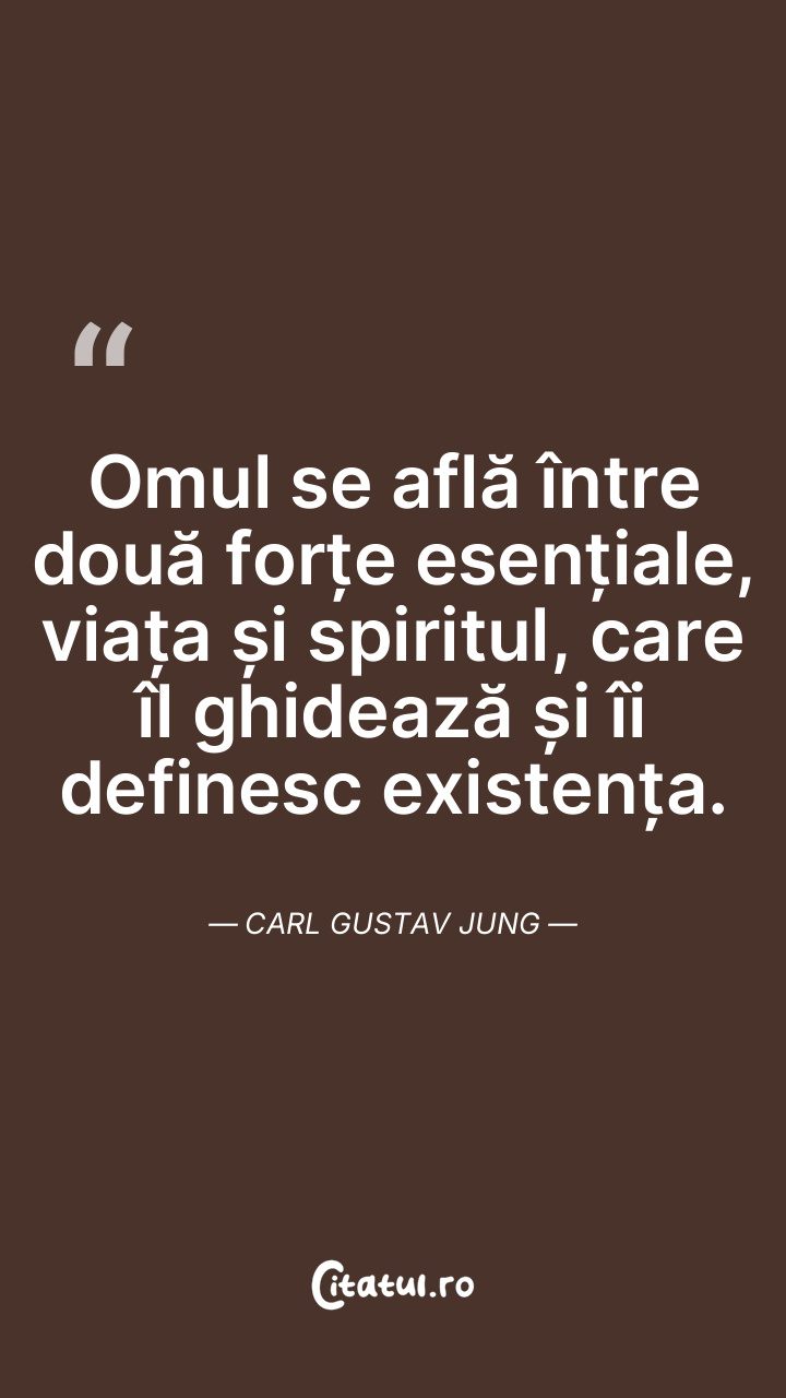 Omul se află între două forțe esențiale, viața și spiritul, care îl ghidează și îi definesc existența. Carl Gustav Jung
