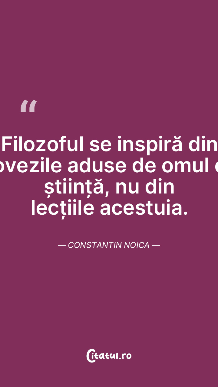 Filozoful se inspiră din dovezile aduse de omul de știință, nu din lecțiile acestuia. Constantin Noica
