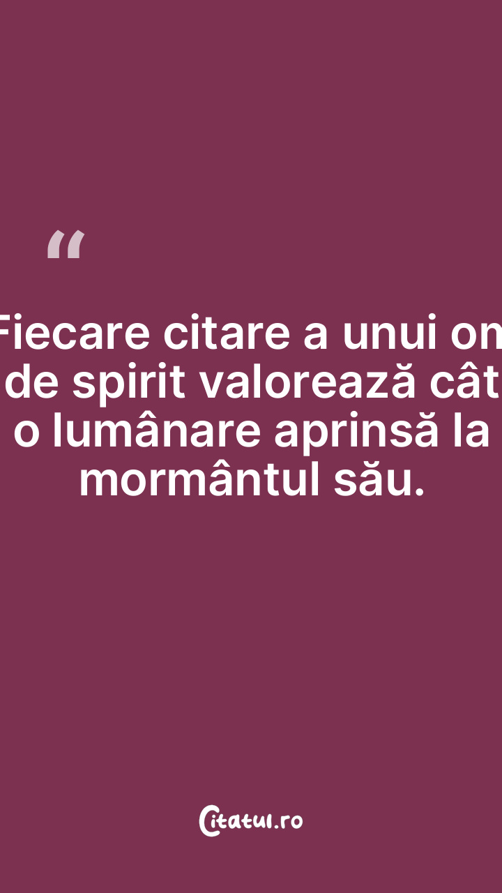 Fiecare citare a unui om de spirit valorează cât o lumânare aprinsă la mormântul său.