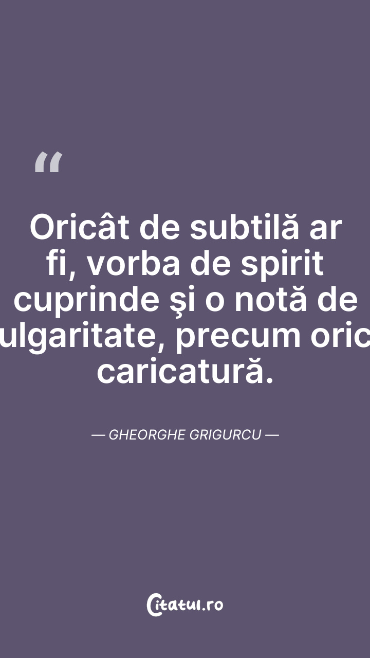 Oricât de subtilă ar fi, vorba de spirit cuprinde şi o notă de vulgaritate, precum orice caricatură. Gheorghe Grigurcu