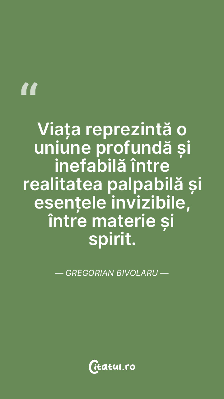 Viața reprezintă o uniune profundă și inefabilă între realitatea palpabilă și esențele invizibile, între materie și spirit. Gregorian Bivolaru