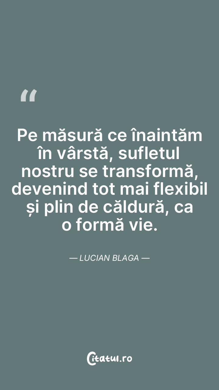 Pe măsură ce înaintăm în vârstă, sufletul nostru se transformă, devenind tot mai flexibil și plin de căldură, ca o formă vie. Lucian Blaga