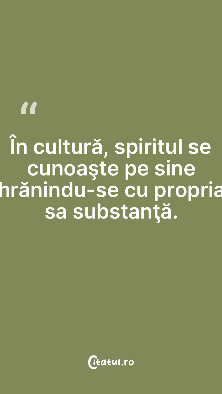 În cultură, spiritul se cunoaşte pe sine hrănindu-se cu propria sa substanţă.