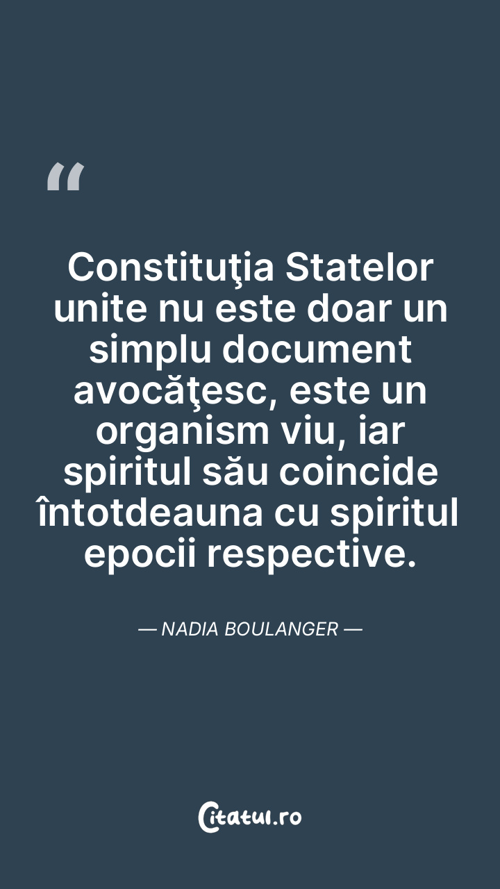 Constituţia Statelor unite nu este doar un simplu document avocăţesc, este un organism viu, iar spiritul său coincide întotdeauna cu spiritul epocii respective. Nadia Boulanger