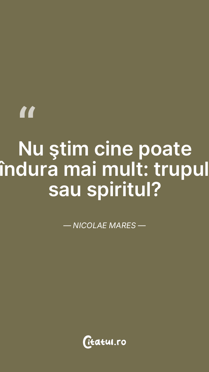 Nu ştim cine poate îndura mai mult: trupul sau spiritul? Nicolae Mares