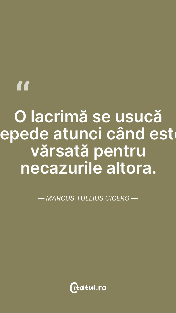 O lacrimă se usucă repede atunci când este vărsată pentru necazurile altora. Marcus Tullius Cicero