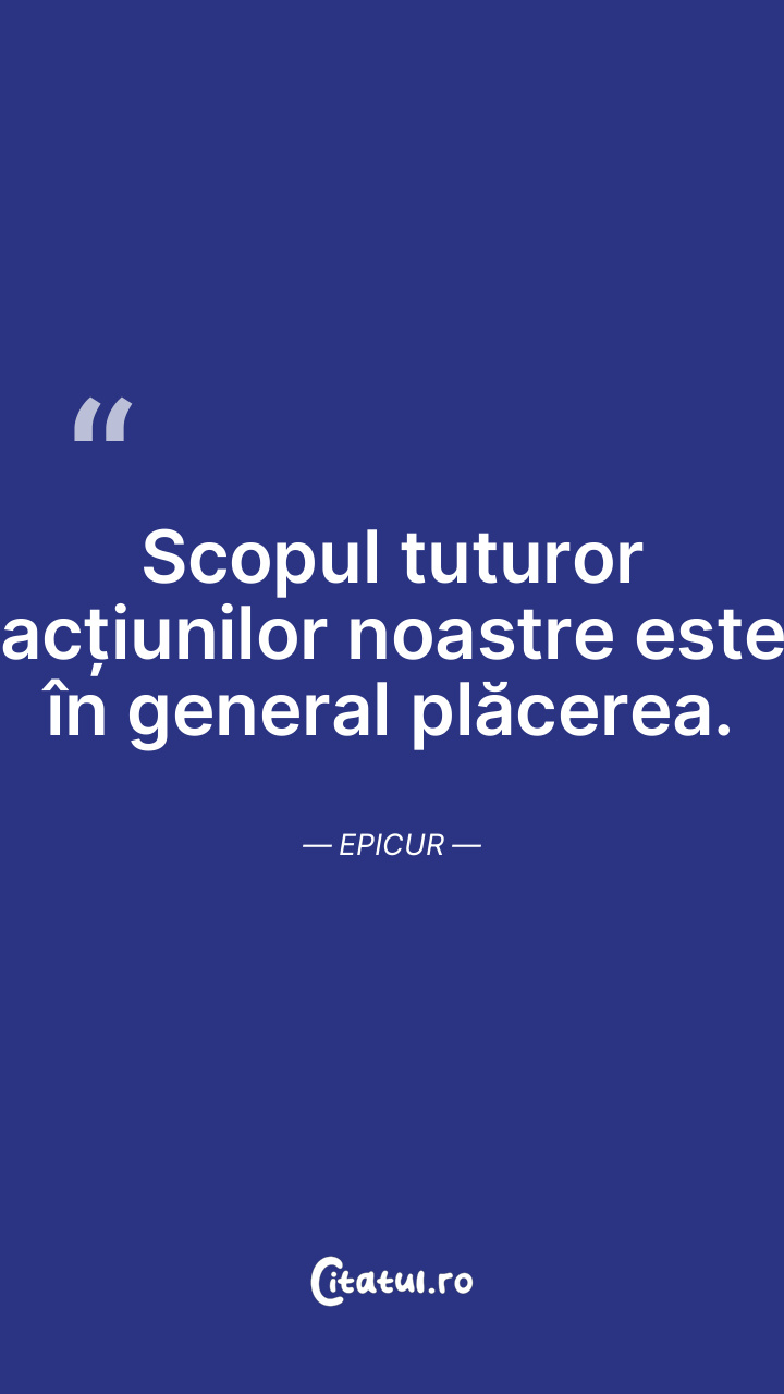 Scopul tuturor acțiunilor noastre este în general plăcerea. Epicur