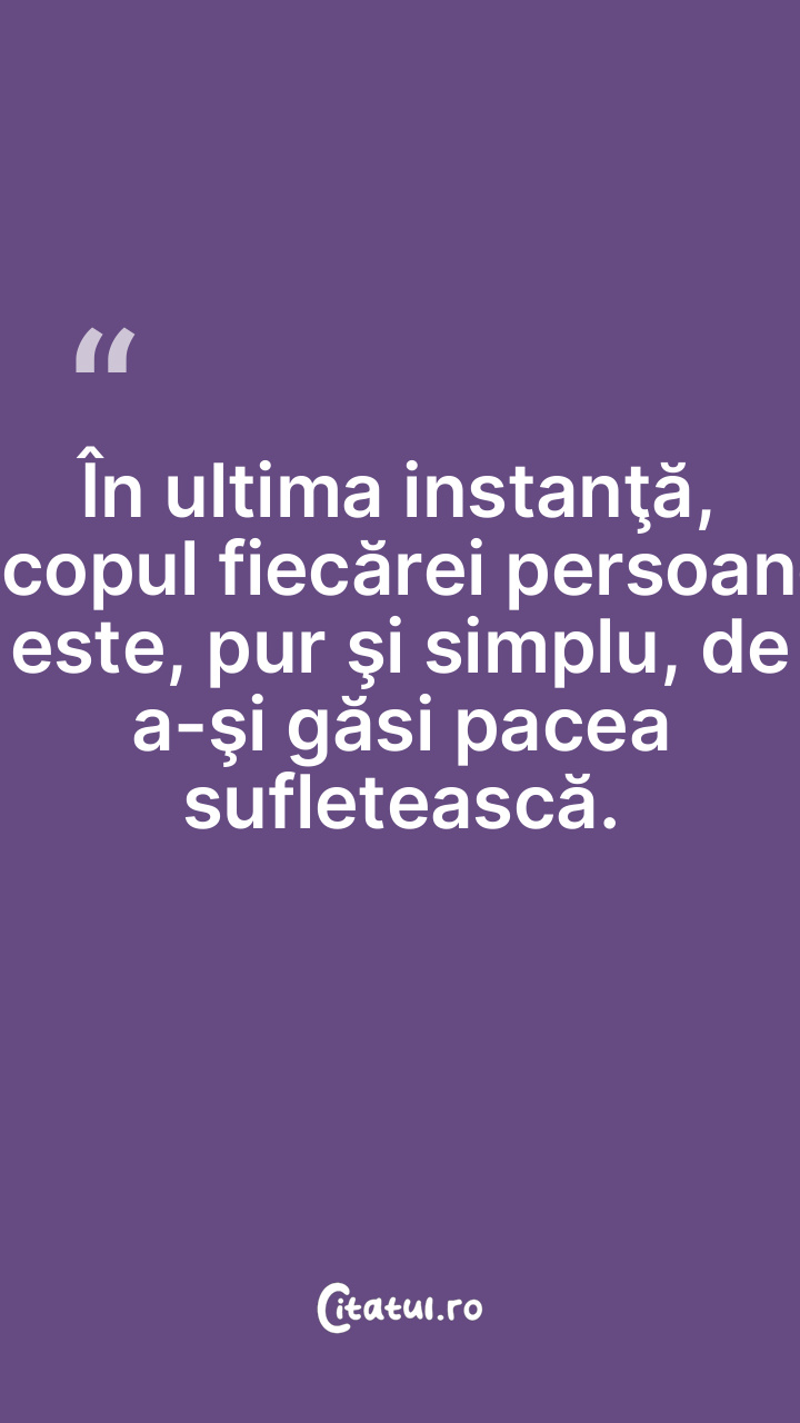 În ultima instanţă, scopul fiecărei persoane este, pur şi simplu, de a-şi găsi pacea sufletească.