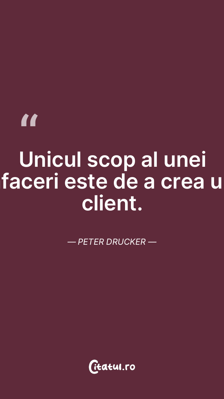 Unicul scop al unei afaceri este de a crea un client. Peter Drucker