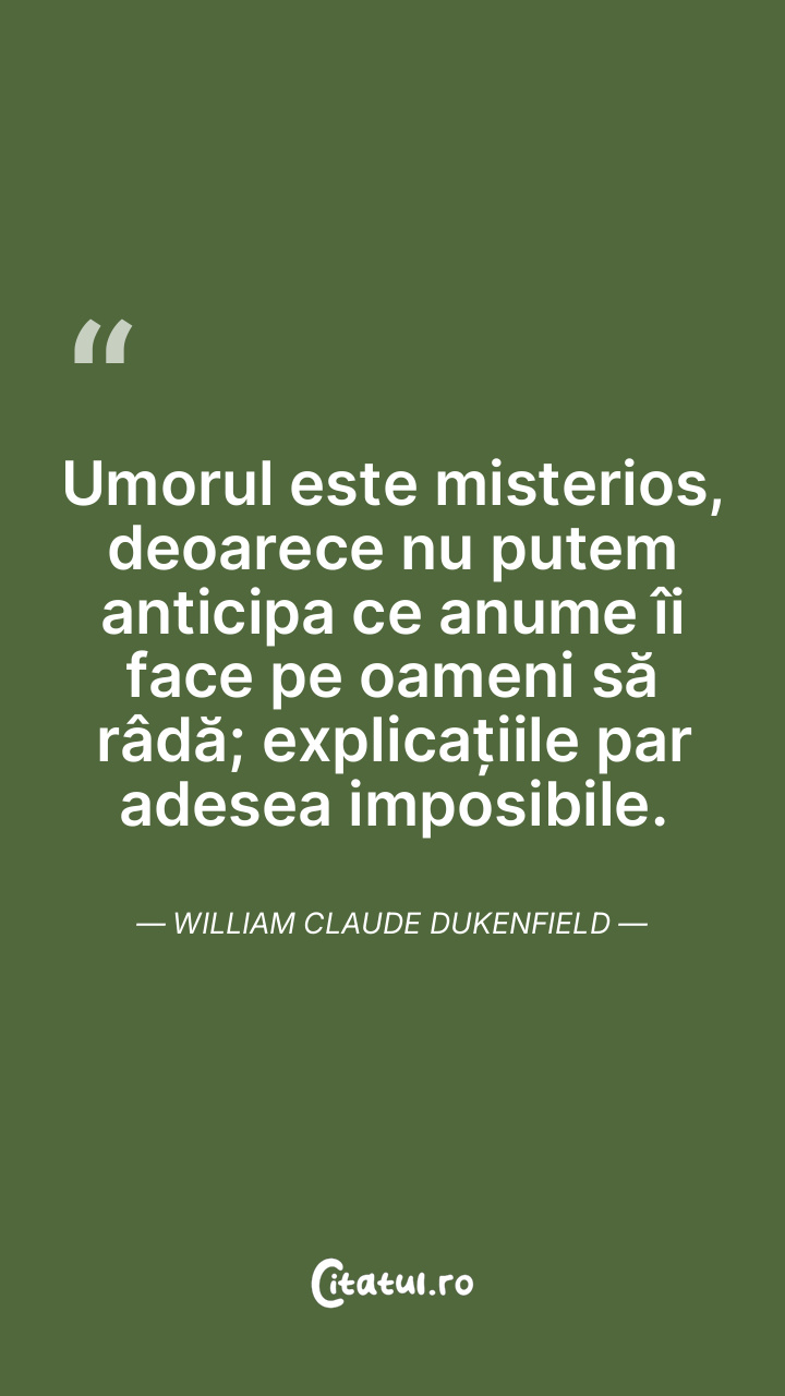 Umorul este misterios, deoarece nu putem anticipa ce anume îi face pe oameni să râdă; explicațiile par adesea imposibile. William Claude Dukenfield