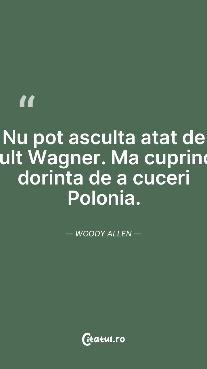 Nu pot asculta atat de mult Wagner. Ma cuprinde dorinta de a cuceri Polonia. Woody Allen