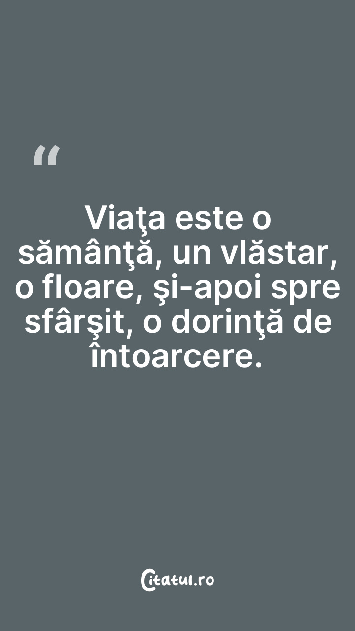 Viaţa este o sămânţă, un vlăstar, o floare, şi-apoi spre sfârşit, o dorinţă de întoarcere.