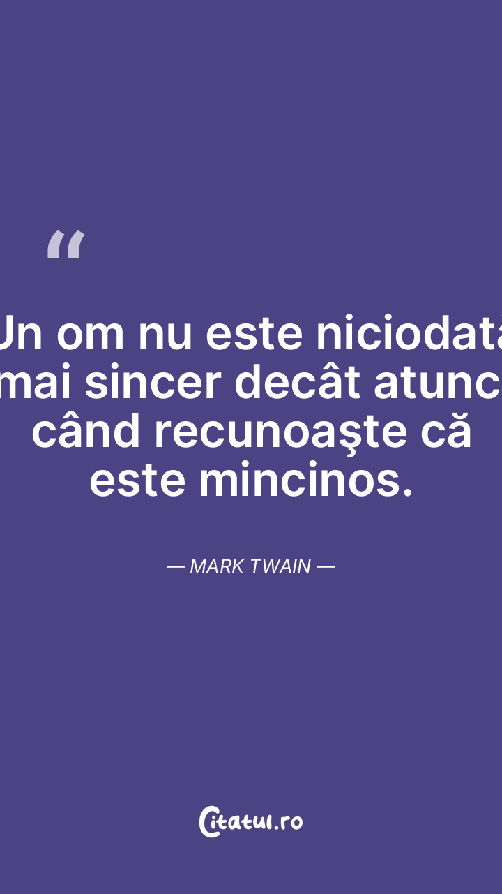Un om nu este niciodată mai sincer decât atunci când recunoaşte că este mincinos. Mark Twain