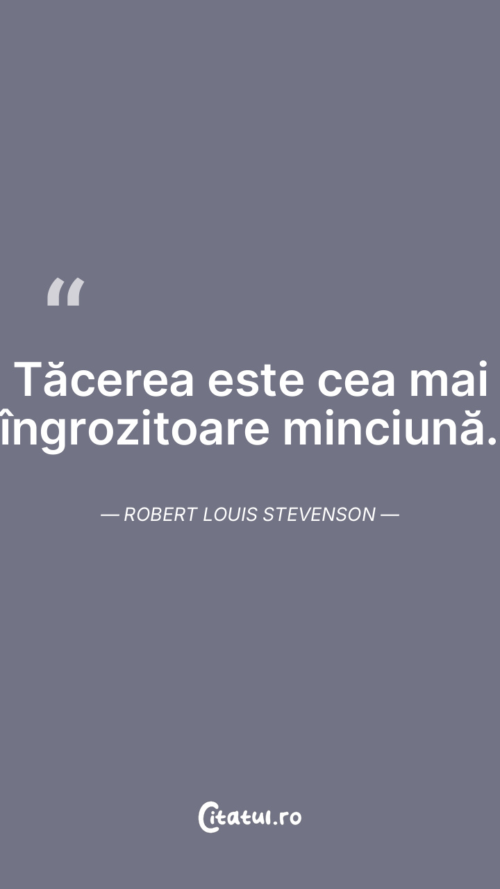 Tăcerea este cea mai îngrozitoare minciună. Robert Louis Stevenson
