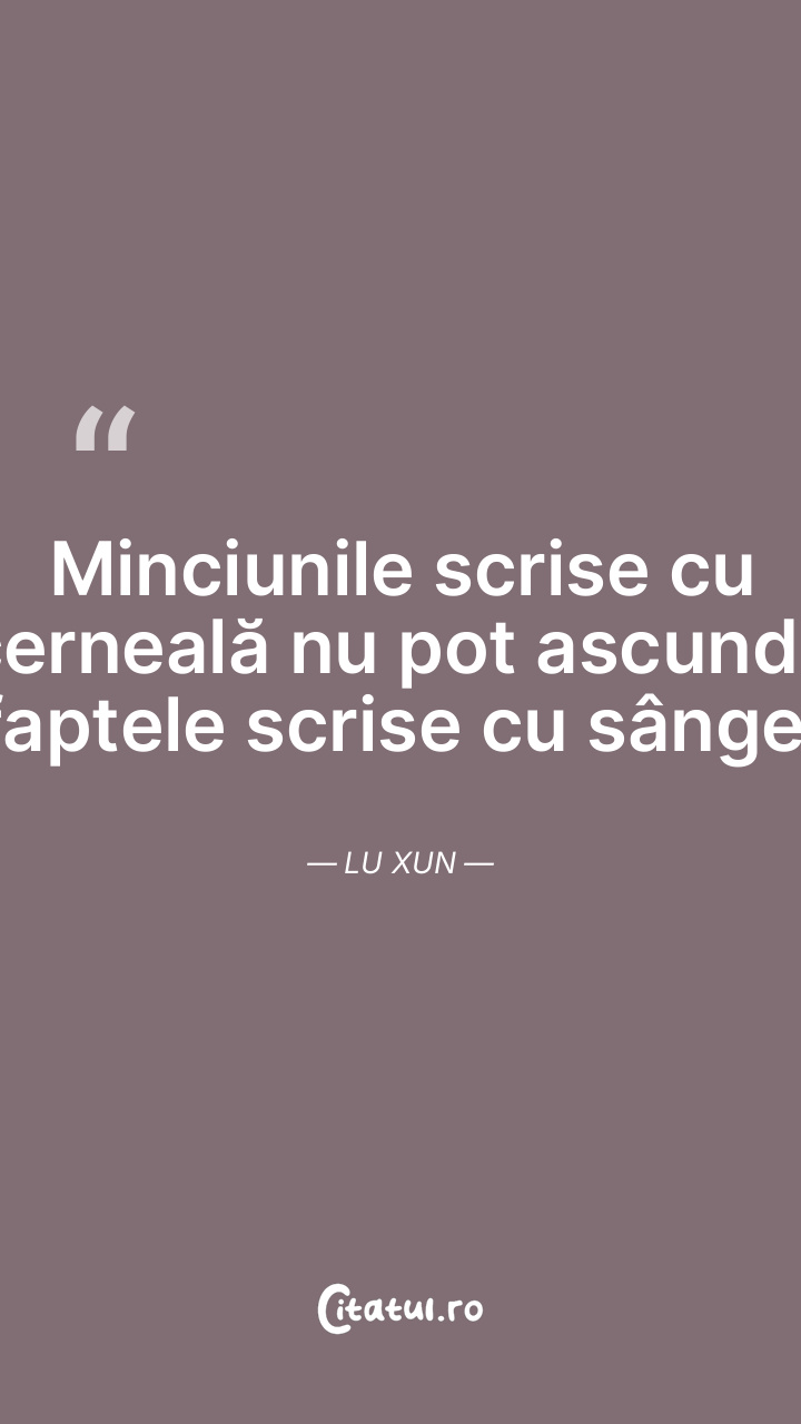 Minciunile scrise cu cerneală nu pot ascunde faptele scrise cu sânge. Lu Xun
