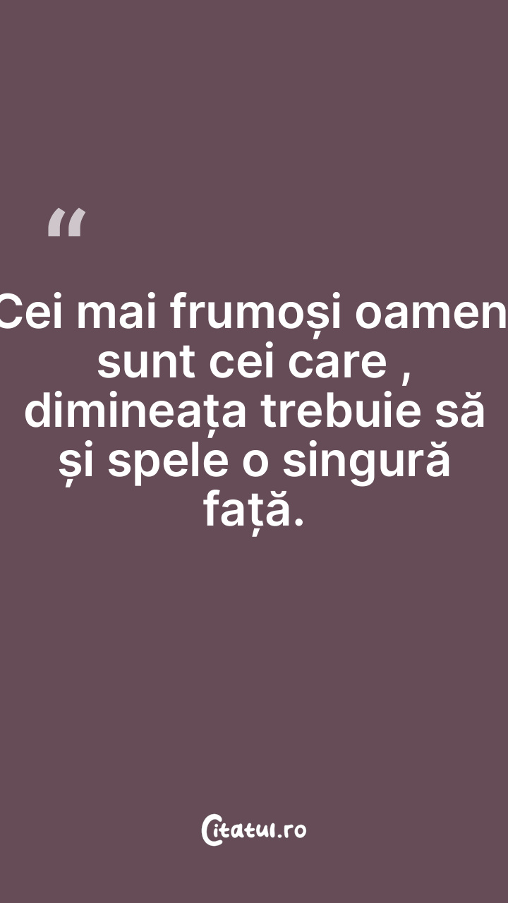 Cei mai frumoși oameni sunt cei care , dimineața trebuie să și spele o singură față.