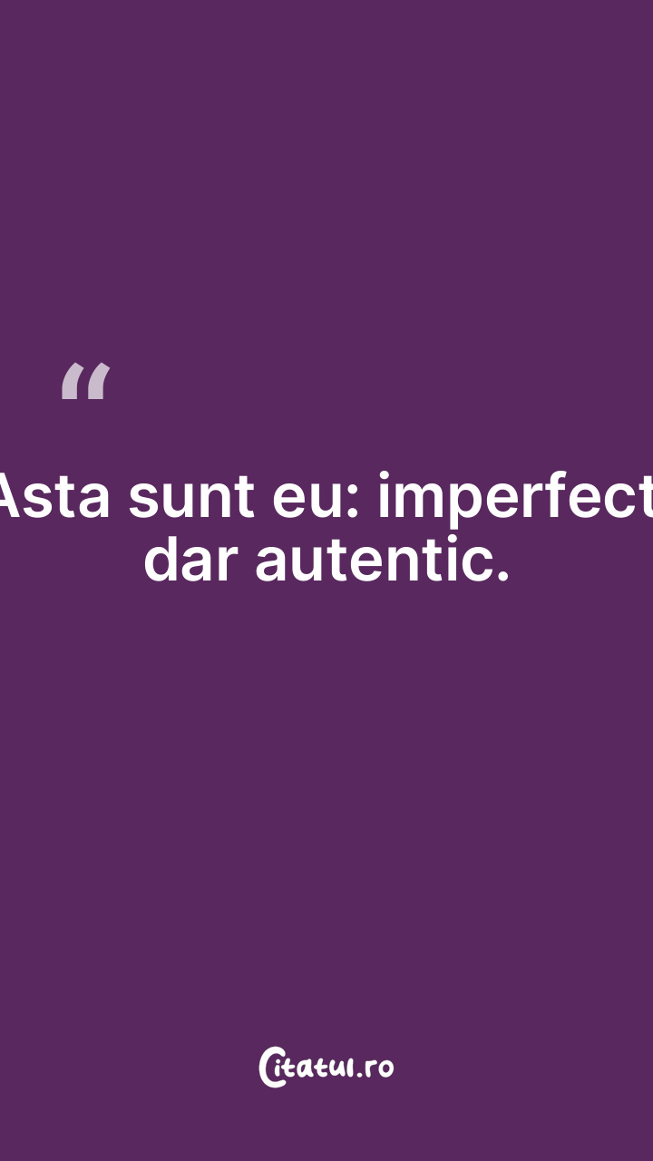 Asta sunt eu: imperfect, dar autentic. ... Categorie: citate triste Dificultate: Foarte ușor de citit! Votează: ★ ★ ★ ★ ★ (0/5 din 0) Distribuiți acest citat? Alegeți platforma preferată: Salvează citatul in telefon/pc Asta sunt eu: imperfect, dar autentic. Copiază Favorite Eroare