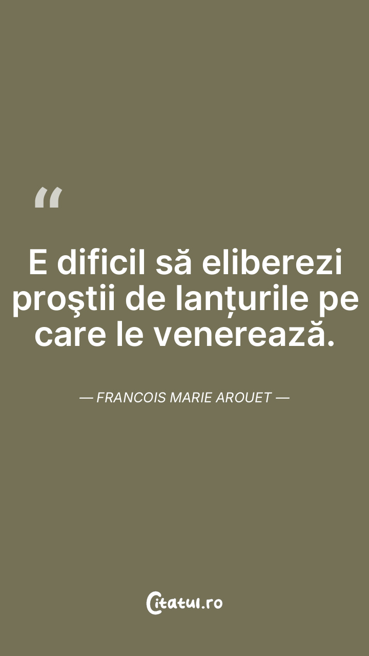 E dificil să eliberezi proştii de lanțurile pe care le venerează. Francois Marie Arouet