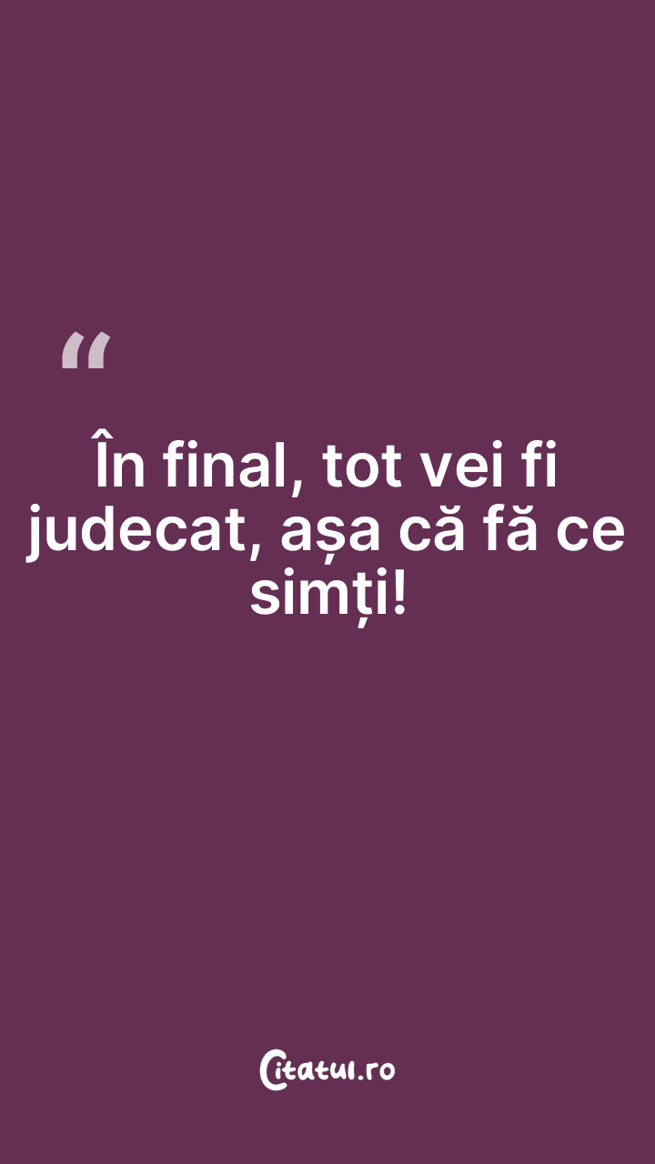În final, tot vei fi judecat, așa că fă ce simți! ...