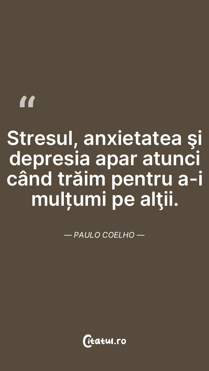 Stresul, anxietatea şi depresia apar atunci când trăim pentru a-i mulțumi pe alţii. Paulo Coelho