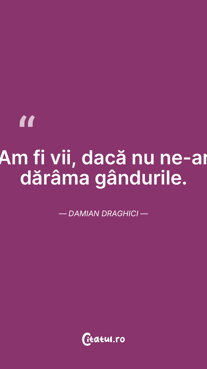 Am fi vii, dacă nu ne-ar dărâma gândurile. Damian Draghici