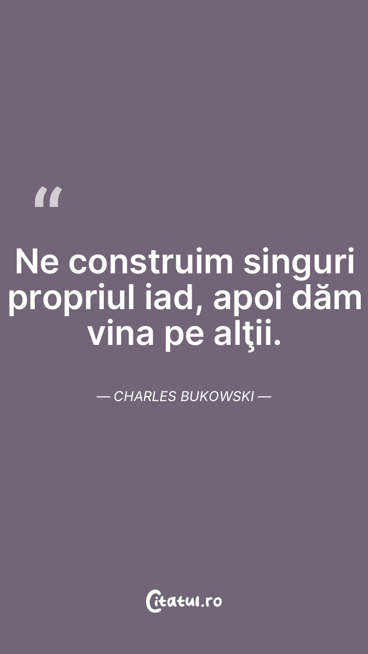Ne construim singuri propriul iad, apoi dăm vina pe alţii. Charles Bukowski