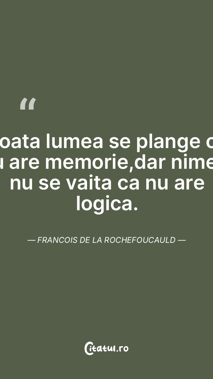 Toata lumea se plange ca nu are memorie,dar nimeni nu se vaita ca nu are logica. Francois de la Rochefoucauld