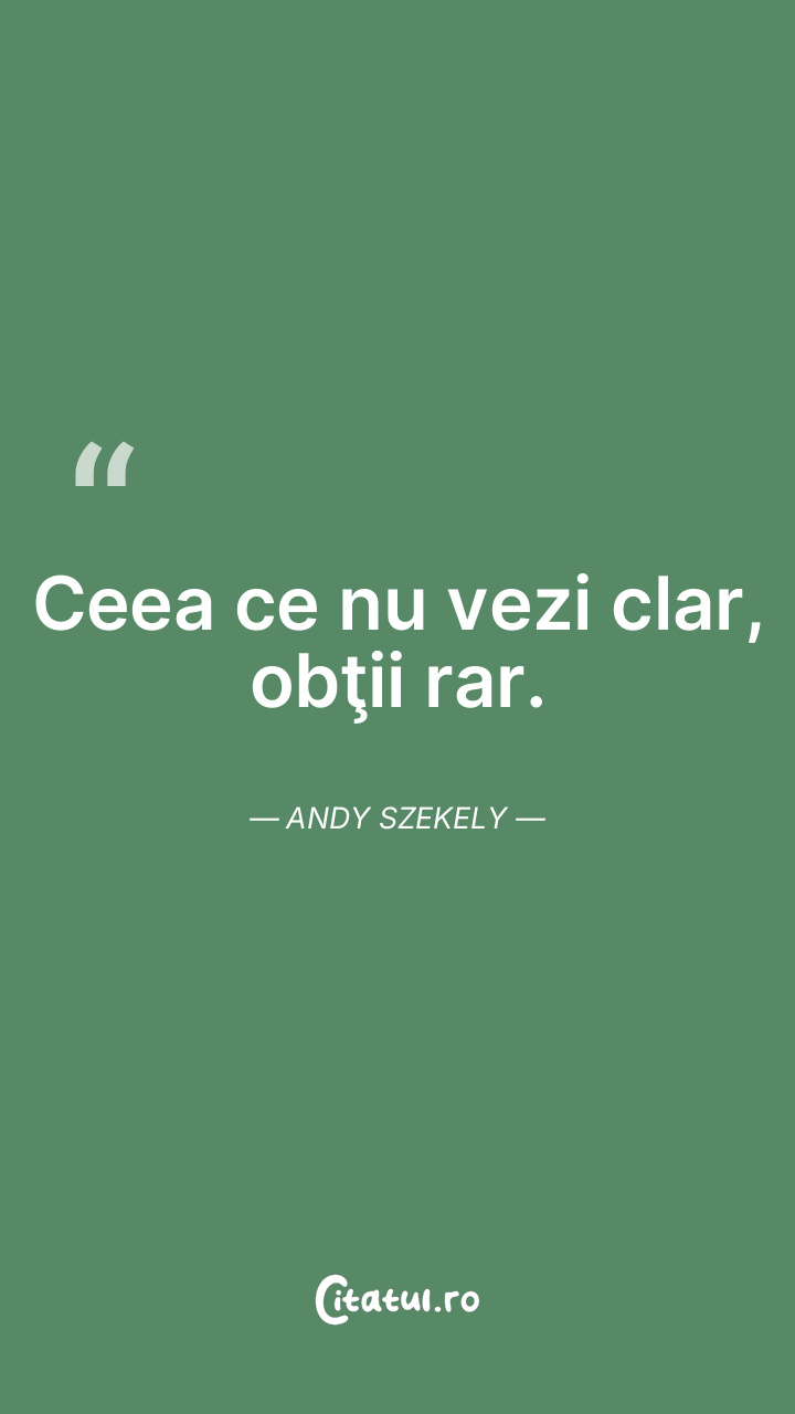 Ceea ce nu vezi clar, obţii rar. Andy Szekely ...