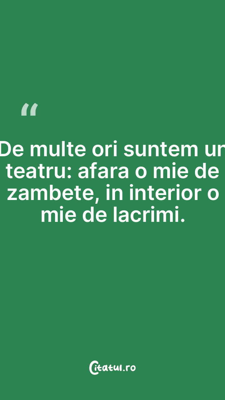 De multe ori suntem un teatru: afara o mie de zambete, in interior o mie de lacrimi.