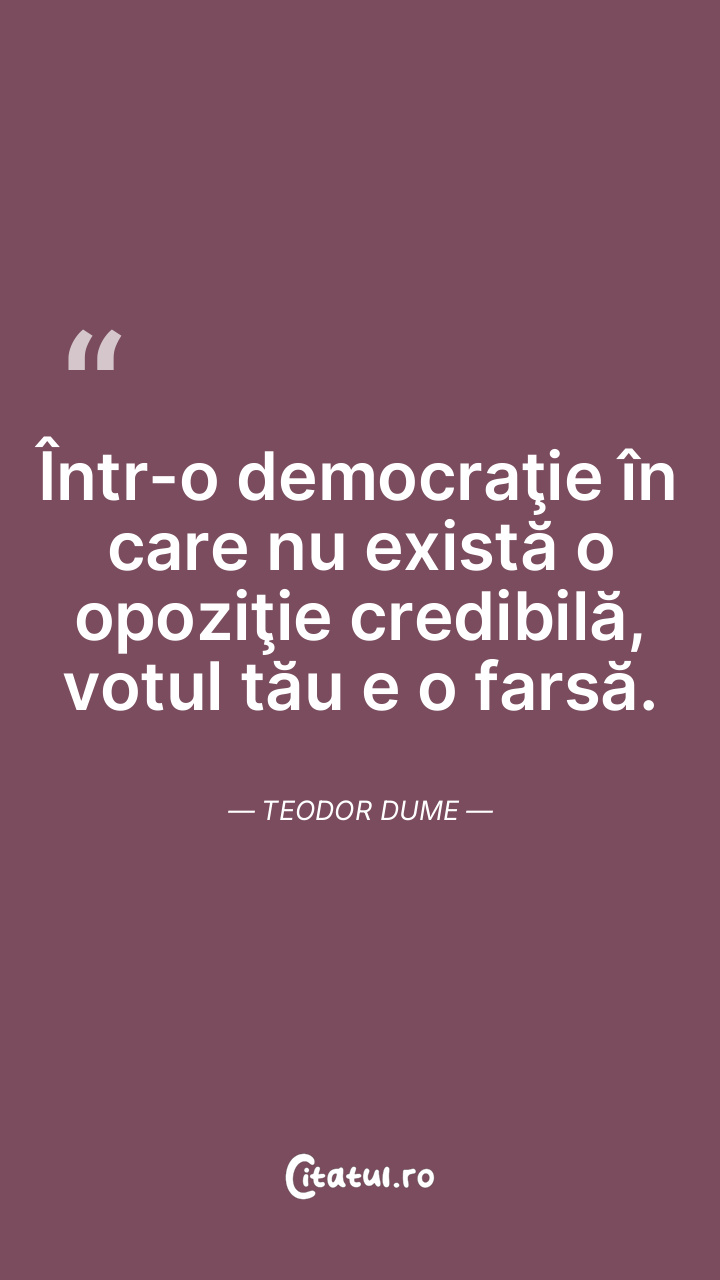 Într-o democraţie în care nu există o opoziţie credibilă, votul tău e o farsă. Teodor Dume
