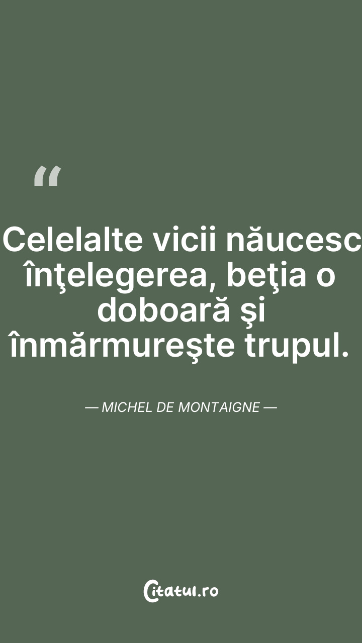 Celelalte vicii năucesc înţelegerea, beţia o doboară şi înmărmureşte trupul. Michel de Montaigne