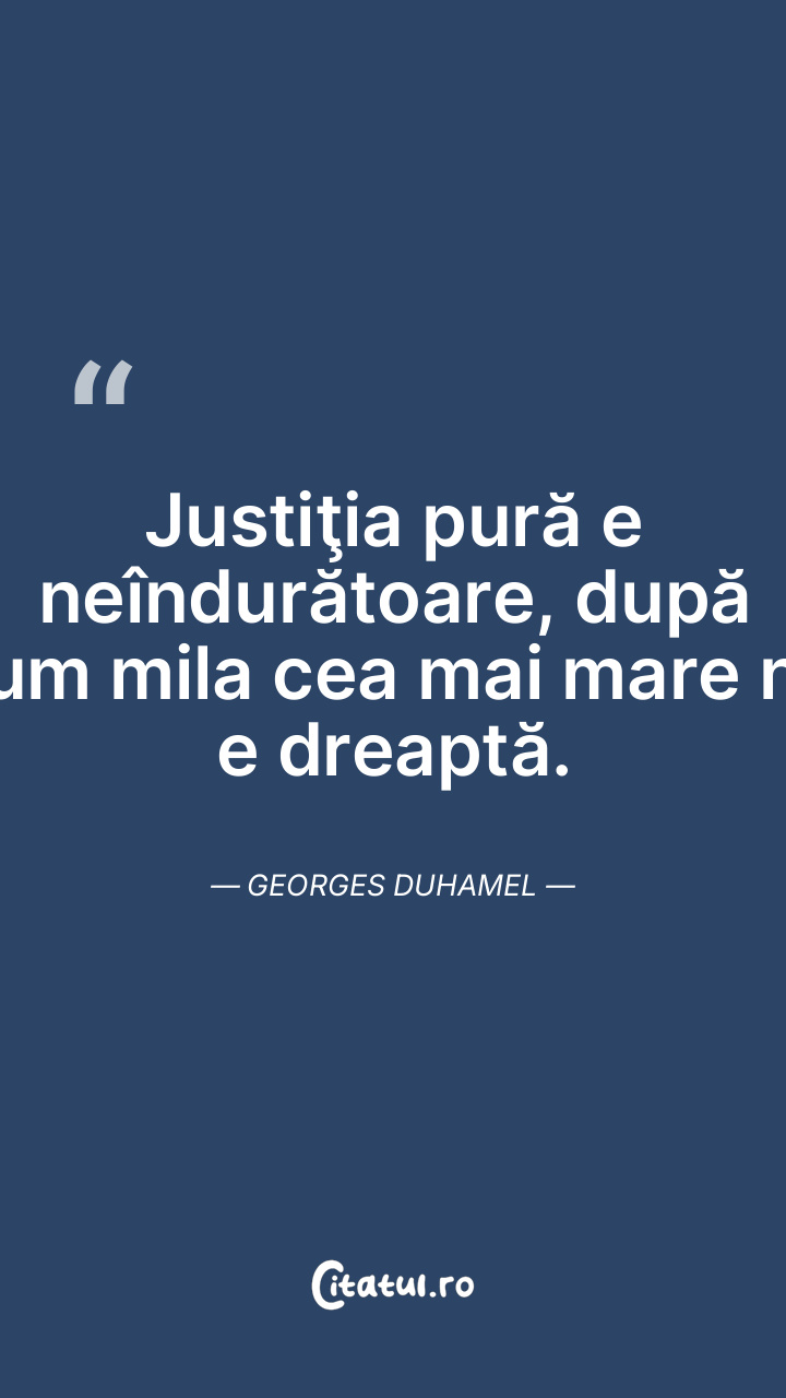 Justiţia pură e neîndurătoare, după cum mila cea mai mare nu e dreaptă. Georges Duhamel