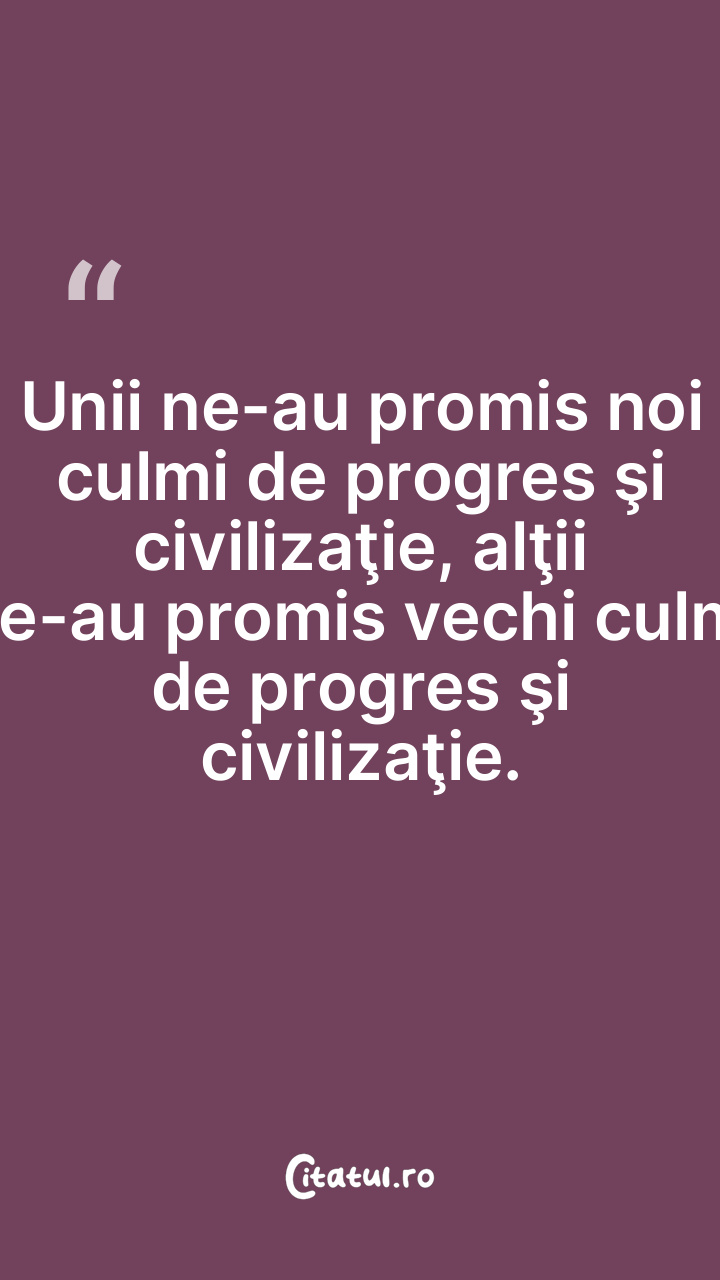 Unii ne-au promis noi culmi de progres şi civilizaţie, alţii ne-au promis vechi culmi de progres şi civilizaţie.