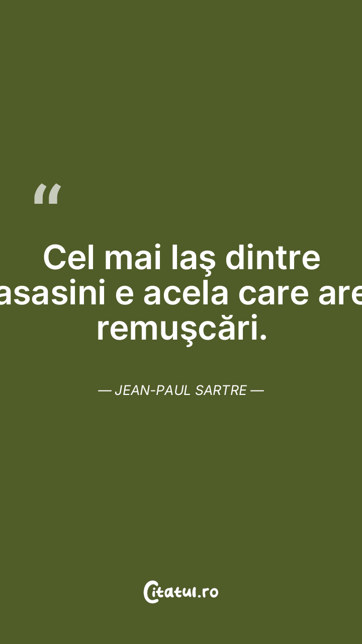 Cel mai laş dintre asasini e acela care are remuşcări. Jean-Paul Sartre