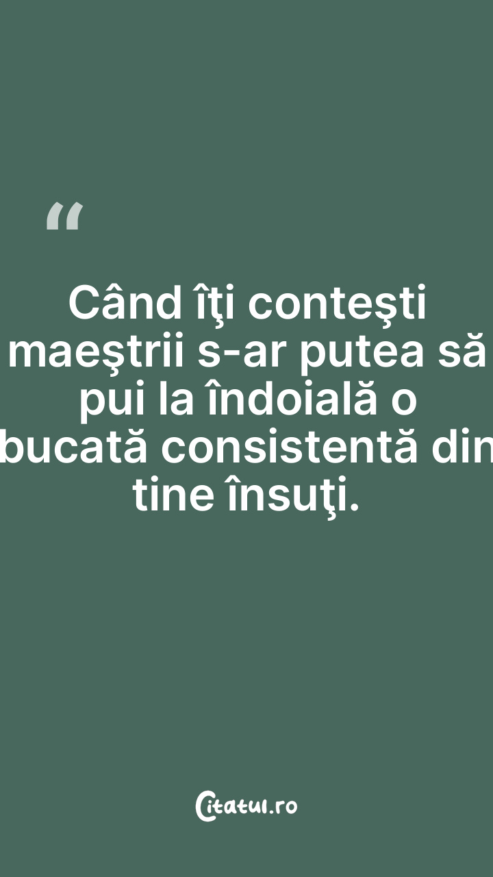 Când îţi conteşti maeştrii s-ar putea să pui la îndoială o bucată consistentă din tine însuţi.